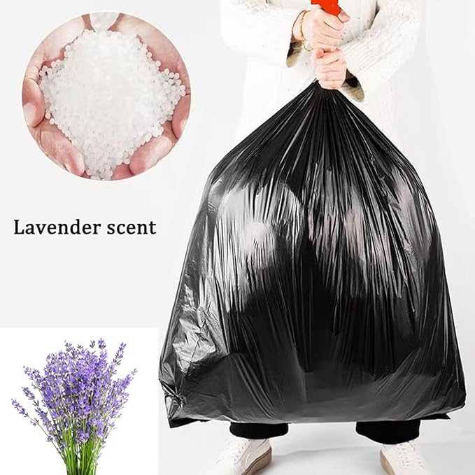 Large black 30 gallon trash bags with lavender scent, Ultra thick heavy duty drawstring garbage bags for tall kitchen outdoor courtyard 31x35 Inches
