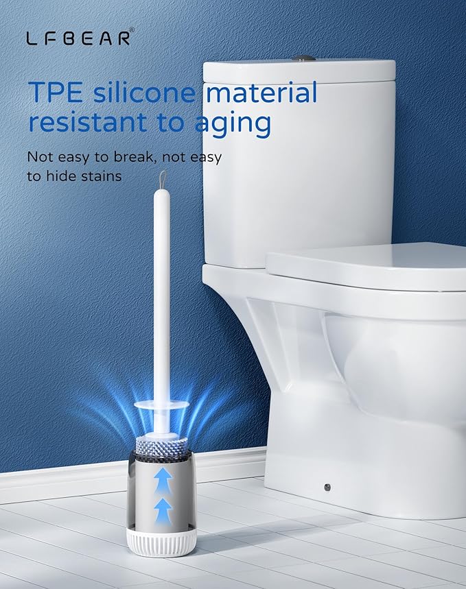 - ✨ Hygienic Toilet Brush and Holder: Upgrade to a cleaner routine. Unlike traditional brushes, our soft toilet brush features non-stick bristles that rinse clean instantly with no trapped hair or debris. This easy to clean design ensures a more hygienic bathroom environment for your family.