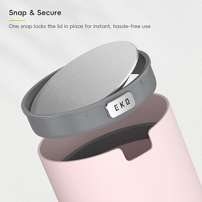 EKO Fandy 0.58 Gal/2.2L Mini Trash Can with Lid, Swing-Top Desktop Trash Can for Bathroom, Countertop, Vanity, Desk or Office, Small Garbage Bin (Pink)