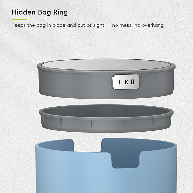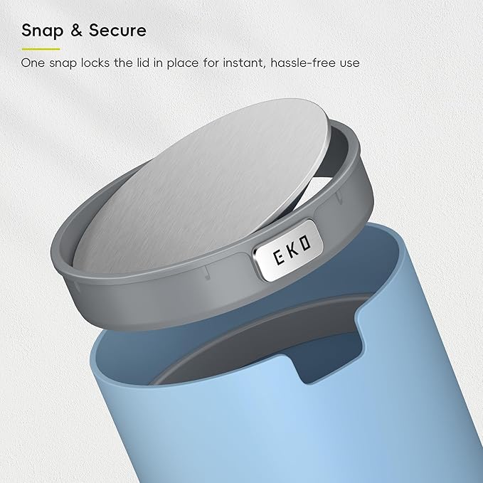 EKO Fandy 0.58 Gal/2.2L Mini Trash Can with Lid, Swing-Top Desktop Trash Can for Bathroom, Countertop, Vanity, Desk or Office, Small Garbage Bin (Blue)
