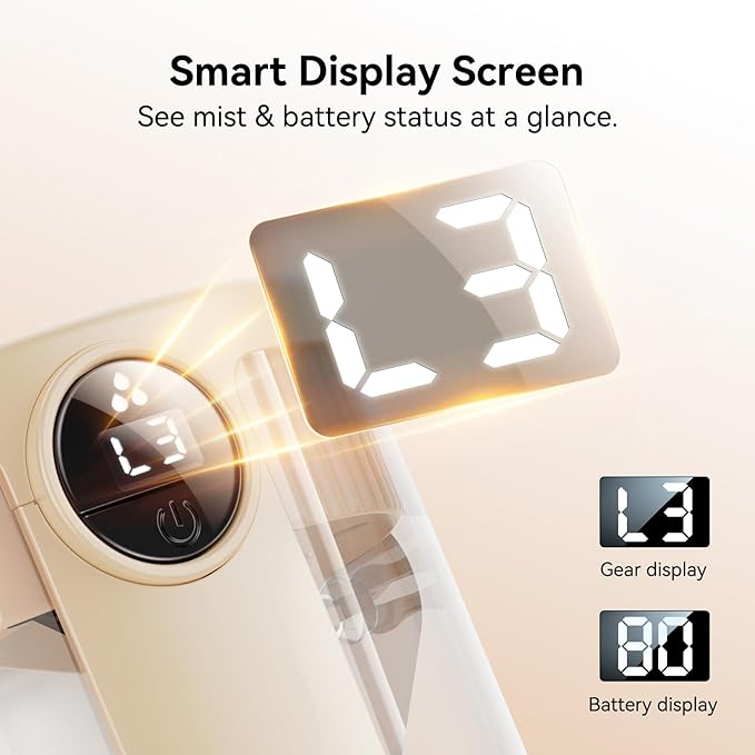 Smart Humidifiers for Bedroom, Rechargeable Top Fill Humidifier with Night Light, 1.4L Cool Mist Humidifier for Office Home Plant and Baby, 3-Speed Mist Control, Quiet, Auto Shut-Off (Beige)