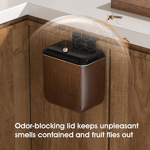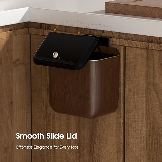 Vintage Kitchen Trash Can with Lid, Large 3.2 Gallon/12 Liter Capacity, Hanging Compost Bin, for Under Sink or Cupboard, Bathroom, Bedroom, Walnut Color