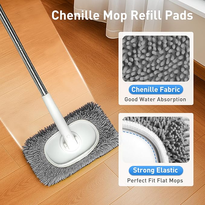 - REUSABLE MOP PADS: Tired of wasteful, flimsy mop pads? Discover our Chenille Mop Refill Pads. Whether you need them for wet mopping or dry sweeping, the reusable mop pads are the perfect tool for every cleaning job. (NOTE: Mop pole not included)