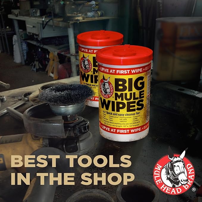 Mule Head Brand XL Heavy-Duty Cleaning Wipes – 2 Pack (10" x 12") – All-Purpose Garage, Automotive & Home Cleaning Wipes – Grease, Ink, Paint, Tar & Grime Remover – Safe for Hands & Multiple Surfaces