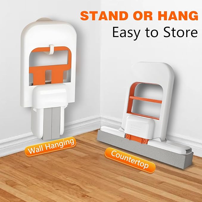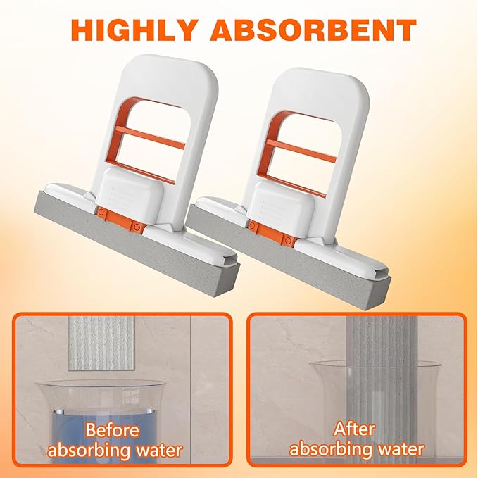 Mini Foldable Desktop Mop, Portable Cleaning Sponge Mop, One-Hand Squeeze Handle & Replaceable Head,Wet Dry Use with Deep Grooves, for Kitchen, Countertops, Glass, Tile (2Pcs)
