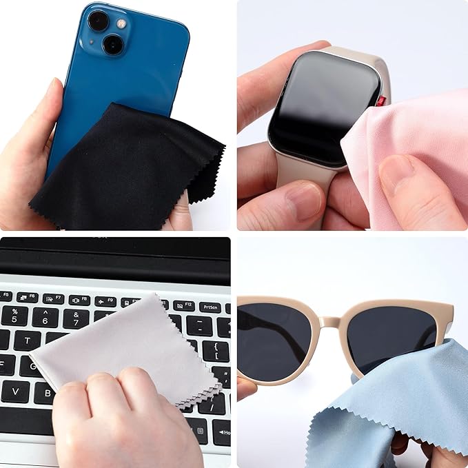 - Precision Cleaning - Premium microfiber material effortlessly removes fingerprints, dust, oil, and water stains from glasses, lenses, screens, and jewelry without scratches or residue. Ideal for delicate surfaces like smartphones, cameras, and sunglasses
