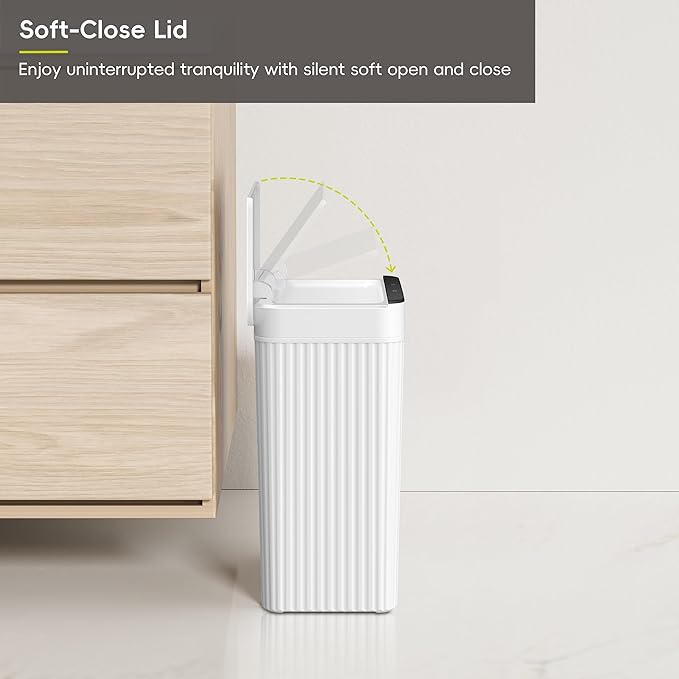- Premium Motion Sensor Technology – This motion sensor trash can responds instantly with fast, accurate lid opening—no false triggers, no delays. Enjoy smooth, quiet, and reliable automatic touchless trash can operation every time