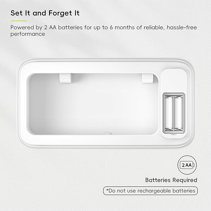 - Energy-Efficient – This battery operated trash can runs on just 2 AA batteries, providing up to 6 months of reliable, touchless trash can performance without frequent replacements
