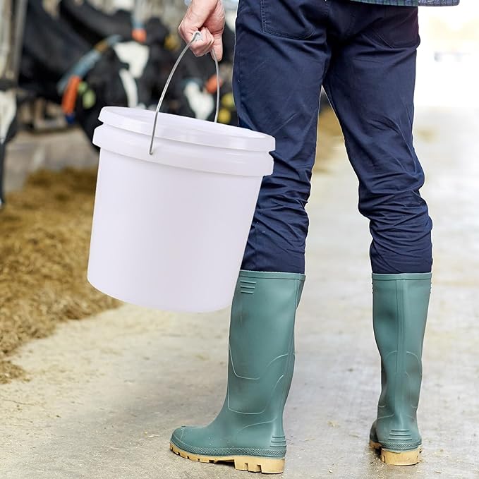 4 Gallon Plastic Food Grade White Bucket with Handle, All Purpose Storage Round Bucket Pail, 6 Packs