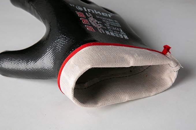 Oil Grasp 374 INKER Gloves, Large Cuff, Nitrile Coated Gloves, Oil-Immersion & Acid-Alkali Resistant, Durable & Abrasion-Resistant,Size 10, Black(Pack of 12)