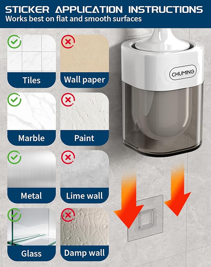 - Wall-Mounted & Free-Standing Dual Use: This toilet brush and holder set offers both wall-mounted and free-standing options, allowing you to save valuable bathroom space while keeping your toilet brush easily accessible. Perfect for small bathrooms or for those who prefer a more organized look.