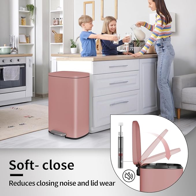 - 13.2Gal+1.3Gal: Two sizes of trash cans can meet a variety of household scenarios. 13-gallon kitchen trash can be used in the kitchen to solve the problem of kitchen waste. 1.3 gallon garbage can be used in the toilet, saving space and having enough capacity