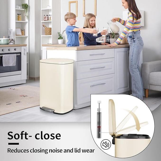 - 13.2Gal+1.3Gal: Two sizes of trash cans can meet a variety of household scenarios. 13-gallon kitchen trash can be used in the kitchen to solve the problem of kitchen waste. 1.3 gallon garbage can be used in the toilet, saving space and having enough capacity