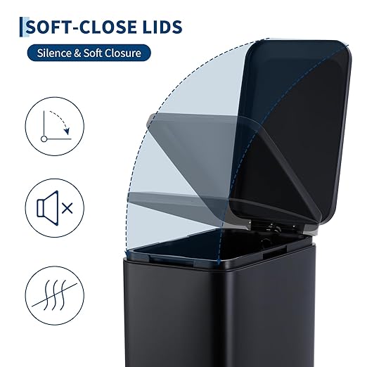 - 【Silent Soft-Close Lid】The slow-closing lid prevents loud slams—perfect for late-night cleanup in kitchens or bathrooms. Enjoy a quieter home while keeping odors contained.